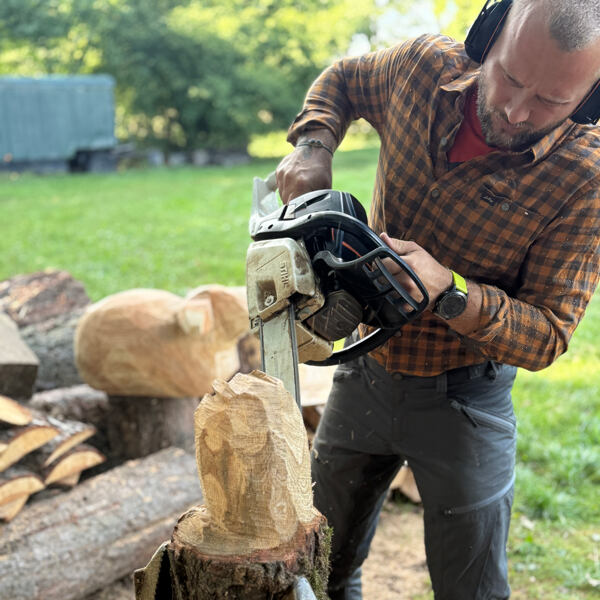 Měl jsem možnost vyzkoušet kalhoty Makke od značky Lundhags při trochu netradiční aktivitě – při řezání soch ze dřeva. Kalhoty tak dostaly pořádně zabrat a hned se ukázalo, co vydrží.